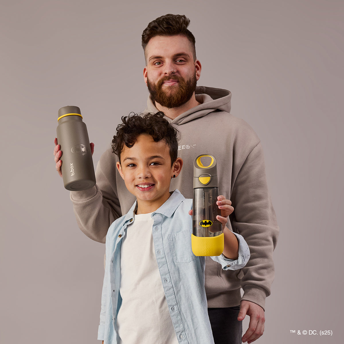 ¡BAM! Cuando la hora del almuerzo necesita un superhéroe, Batman salva el día con accesorios de almuerzo e hidratación inspirados en el Cruzado Enmascarado. ¡Los niños estarán llenos de energía para el patio de recreo!