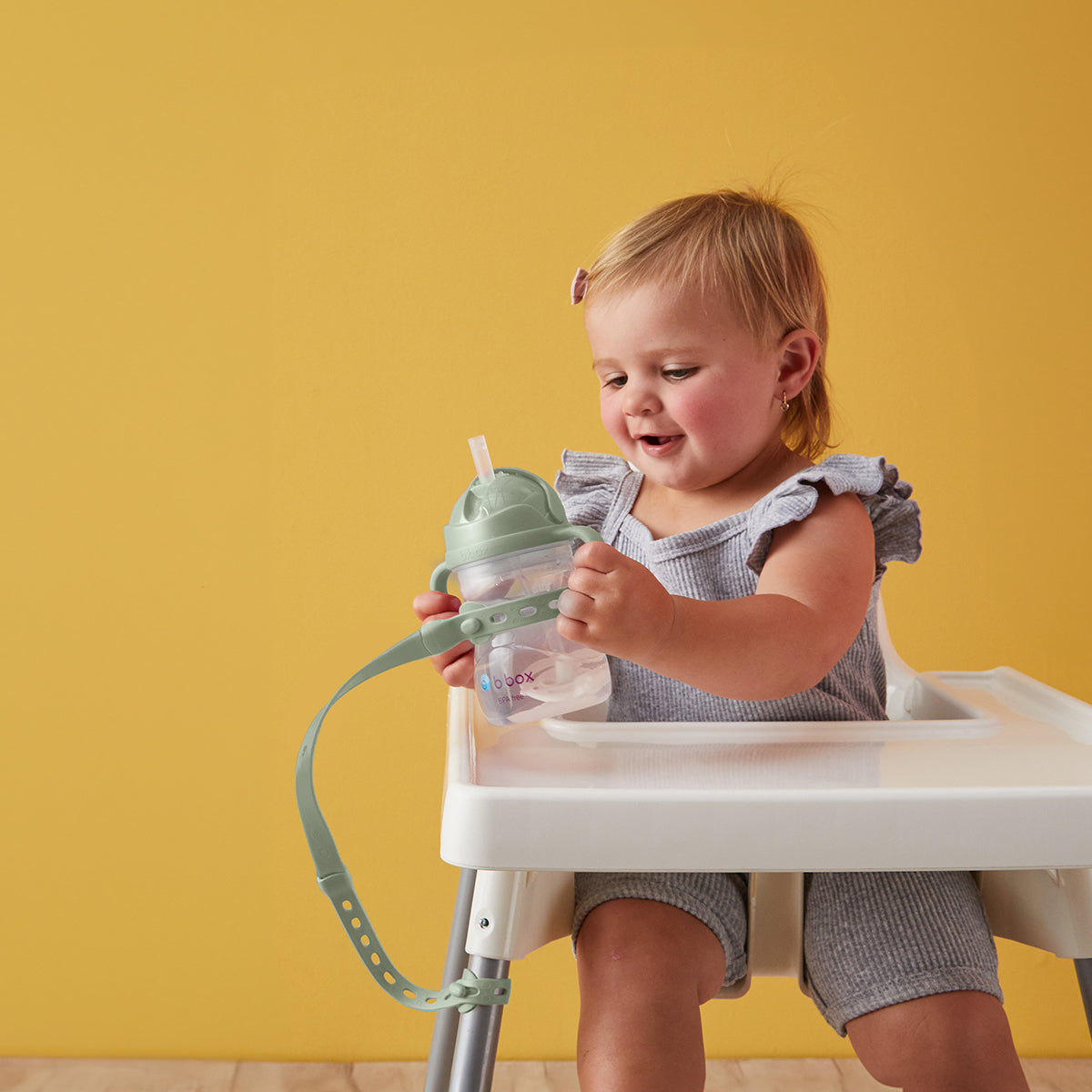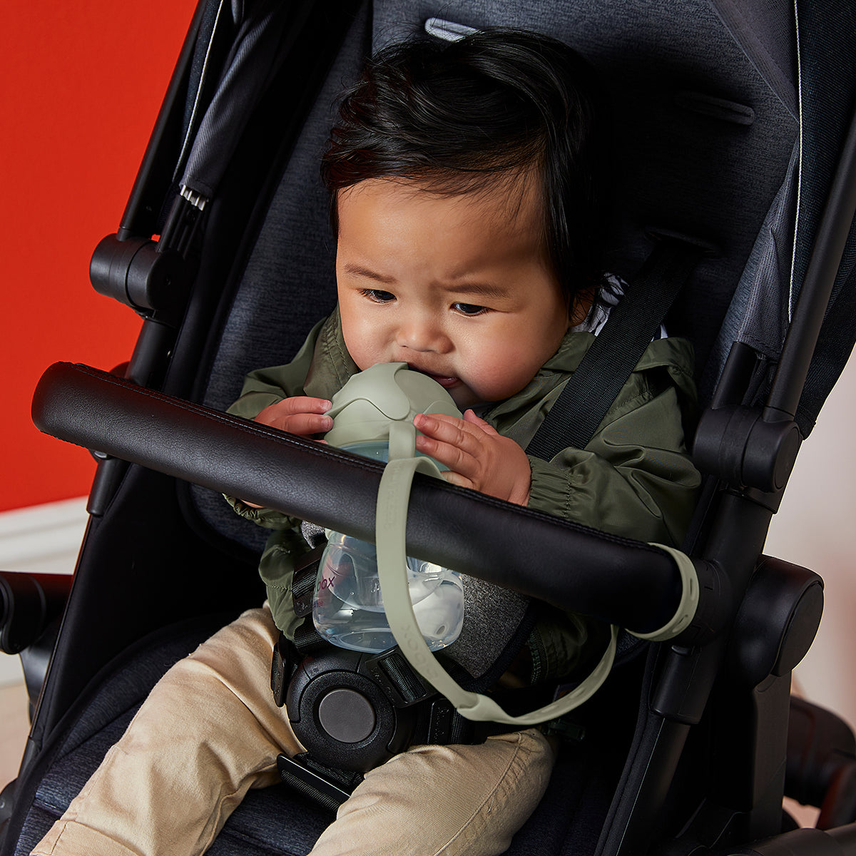 Nuestra correa anticaídas de silicona flexible garantiza que la taza favorita de tu bebé siempre esté a mano. Se acabaron las tazas perdidas en el supermercado, los biberones que se escapan del cochecito y los vasos que se caen de la trona.