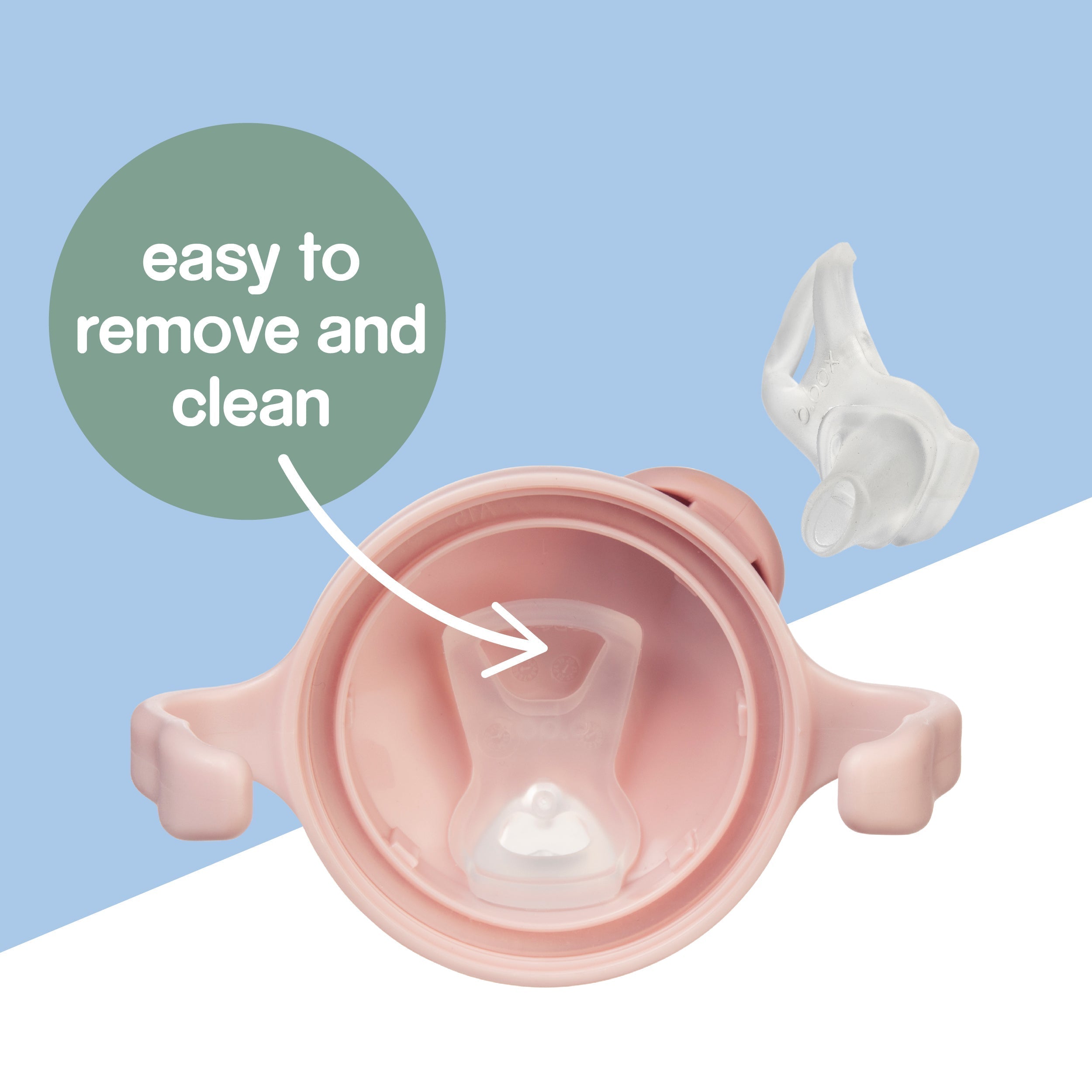 • Intercambie el recipiente de la taza con, la tapa de la taza con pajita o, la tapa de la taza con borde de entrenamiento, para tener así más opciones a medida que el bebé crece y pasa por diferentes etapas y fases.