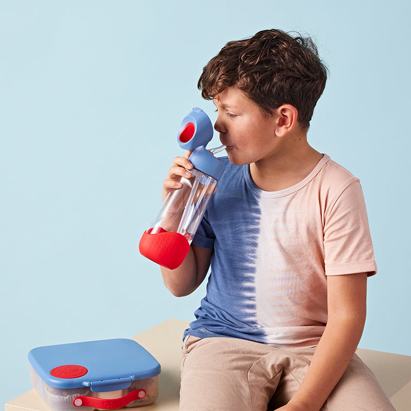 Fabricada en Tritan™, nuestra botella de 600 ml para niños grandes está diseñada para niños más grandes con mucha sed. Cuenta con una apertura rápida con botón pulsador, una botella triangular única para un agarre fácil y una práctica asa para llevar.