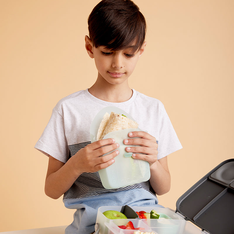 ¡Adiós a los plásticos de usar y tirar gracias a nuestra bolsa reutilizable de silicona! Ahora puedes preparar una amplia variedad de refrigerios y almuerzos saludables, desde sándwiches y sushi hasta bagels, wraps y más.