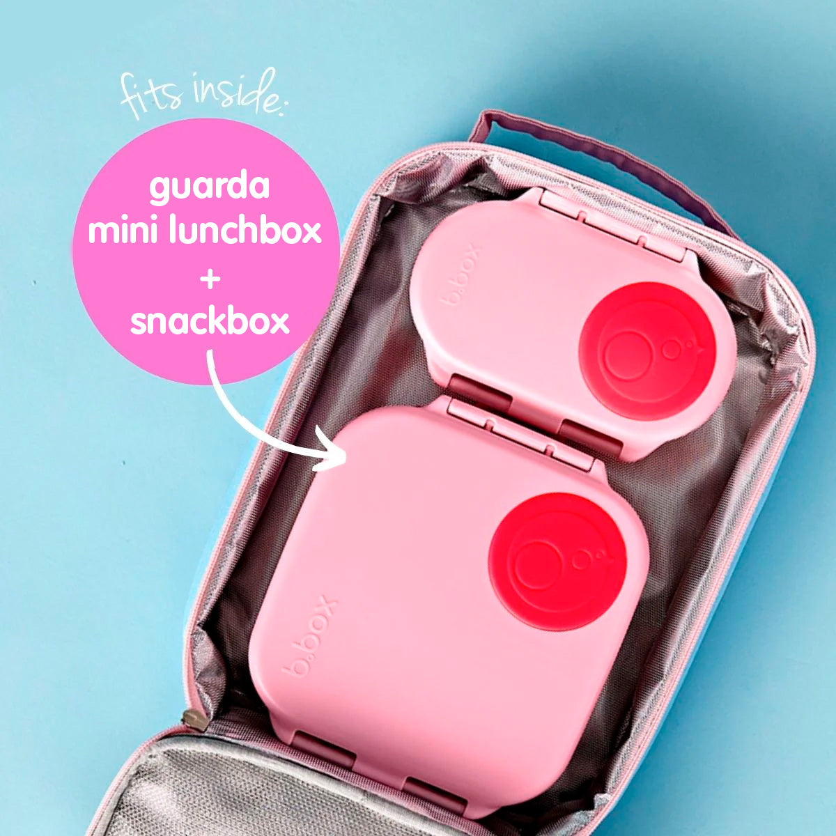 - Lados flexibles para adaptarse a varias combinaciones de tus fiambreras favoritas (¡incluida lunchbox y snackbox juntas!)