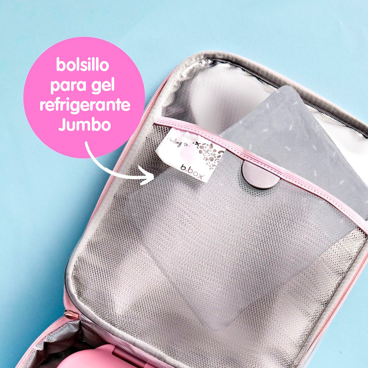 - El bolsillo interior de malla se adapta al gel refrigerante Jumbo (se vende por separado)