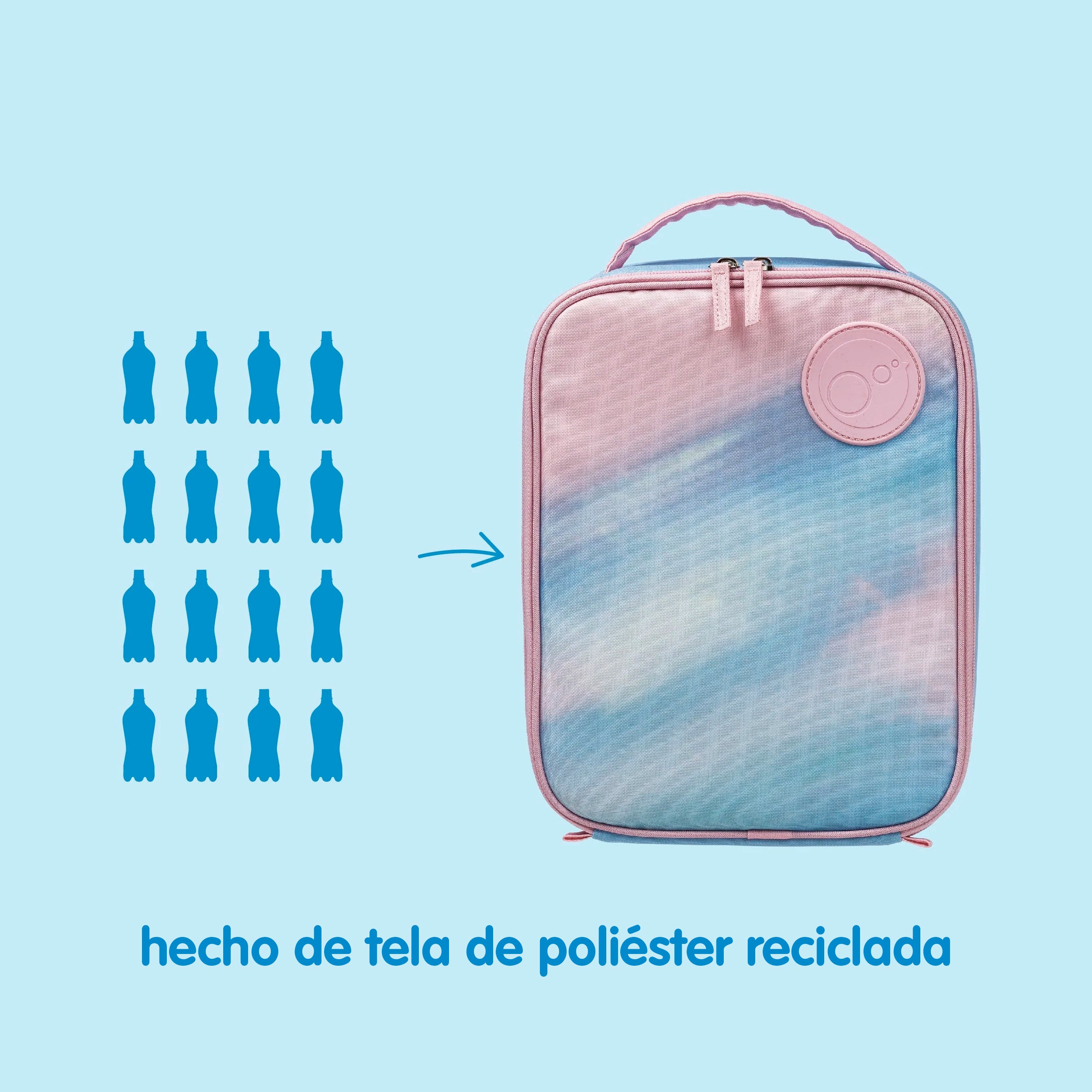 - Fabricado con tejido de poliéster reciclado, con forro de aluminio duradero.