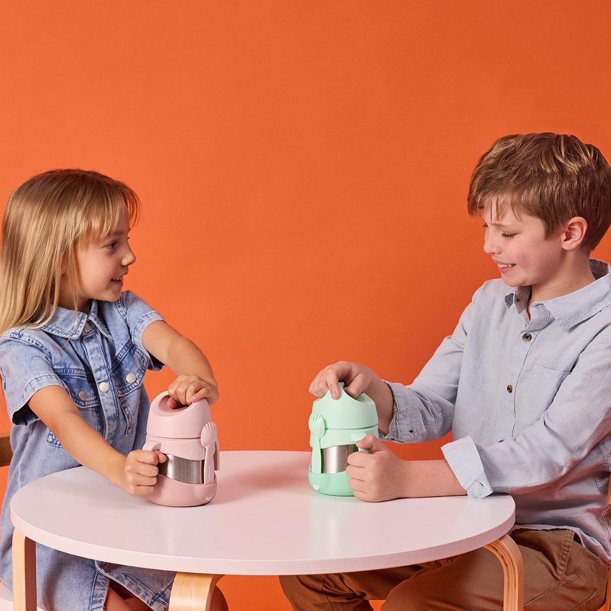 No es un termo común y corriente. Mantiene la comida a la temperatura perfecta durante horas, ya sea que los niños prefieran pasta caliente para el almuerzo o fruta y yogur fríos y refrescantes. Y a diferencia de otros termos, el nuestro cuenta con un tapón único que evita que la tapa se apriete demasiado, ideal para que los niños pequeños la abran solos. Incluye cuchara/tenedor, protector extraíble y asas para diferentes edades y etapas.
