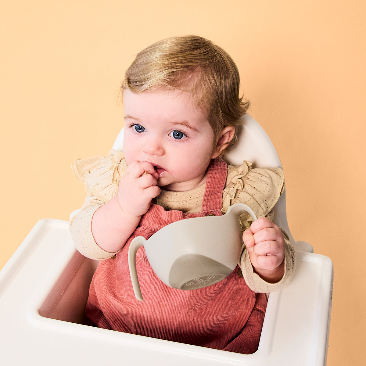 Úsalo con la tapa de silicona para snacks y disfruta de un snack sin complicaciones en cualquier lugar. Para papillas o sopa, simplemente retira la tapa de snacks y coloca la pajita sujeta al lateral de la taza.