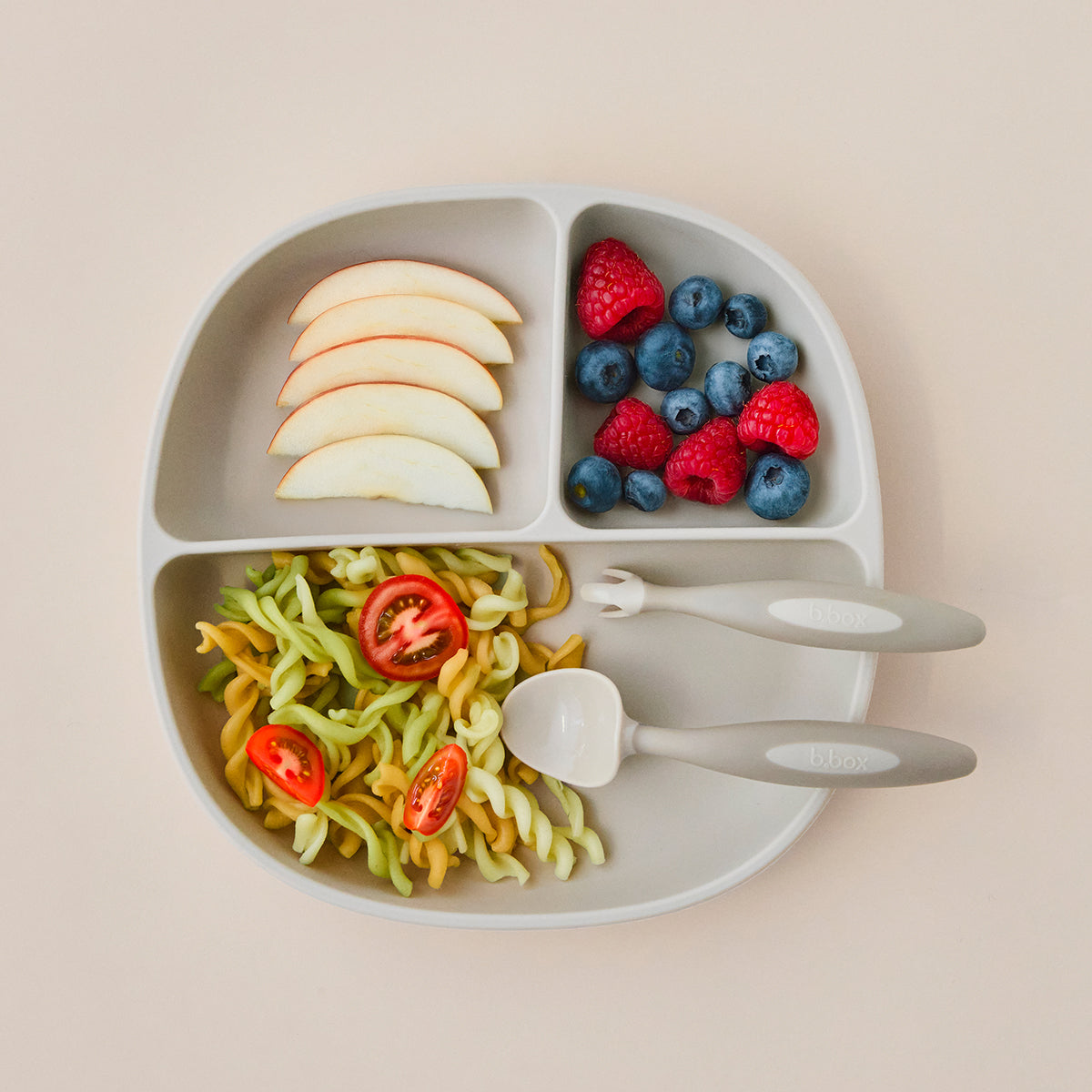 Nuestro juego de cubiertos ha sido diseñado en colaboración con una destacada terapeuta ocupacional pediátrica como el kit ideal para los pequeños que ya pueden alimentarse solos.