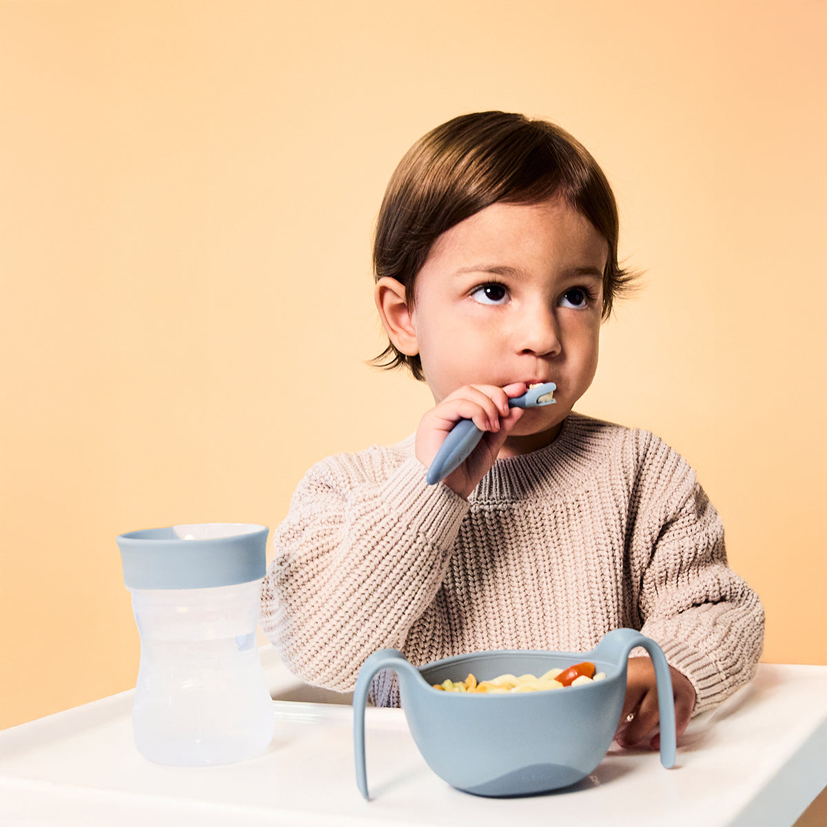 Nuestro juego de cubiertos ha sido diseñado en colaboración con una destacada terapeuta ocupacional pediátrica como el kit ideal para los pequeños que ya pueden alimentarse solos.