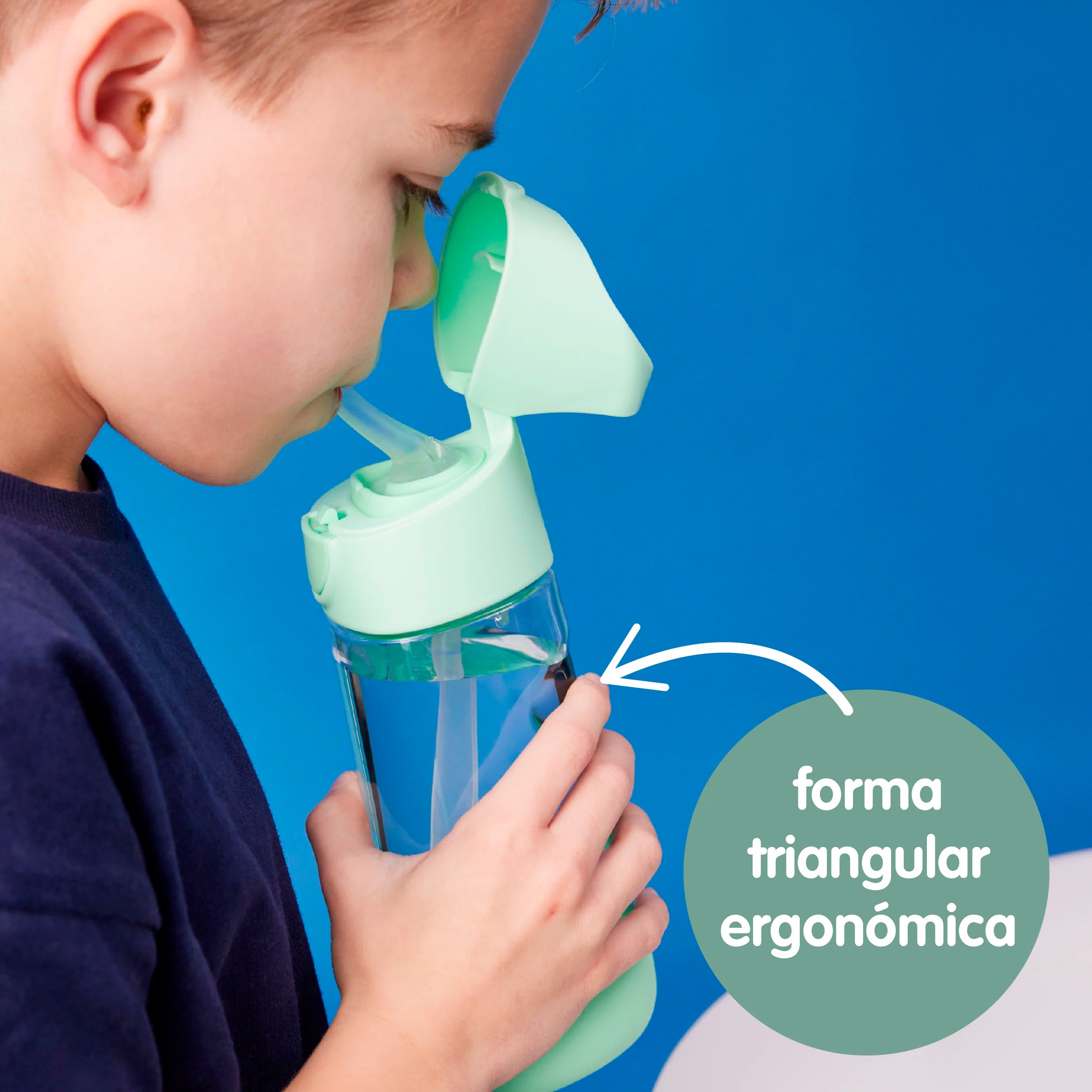 Fabricada en Tritan™, nuestra botella de 450 ml para niños grandes es perfecta para preescolares y niños en edad escolar. Cuenta con una apertura rápida con botón pulsador, una botella triangular única para un agarre fácil y una práctica asa para llevar.